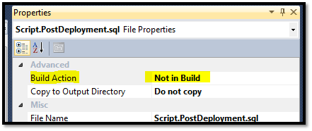 So, back to Script.PostDeployment problem. I noticed that there is a property that can be set to every SQL scripts: BuildAction.
