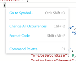 - Go to Symbol: displays a list of elements in the JSON that you can access when selecting an element from the list.