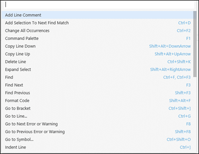 - Command Palette: this command will display the available commands in ADF. Even though the shortcut key is F1, it doesn’t have the same behavior as on-premises program; it will not open another browser or tab in the browser that displays the documentation. It only provides a list of commands.